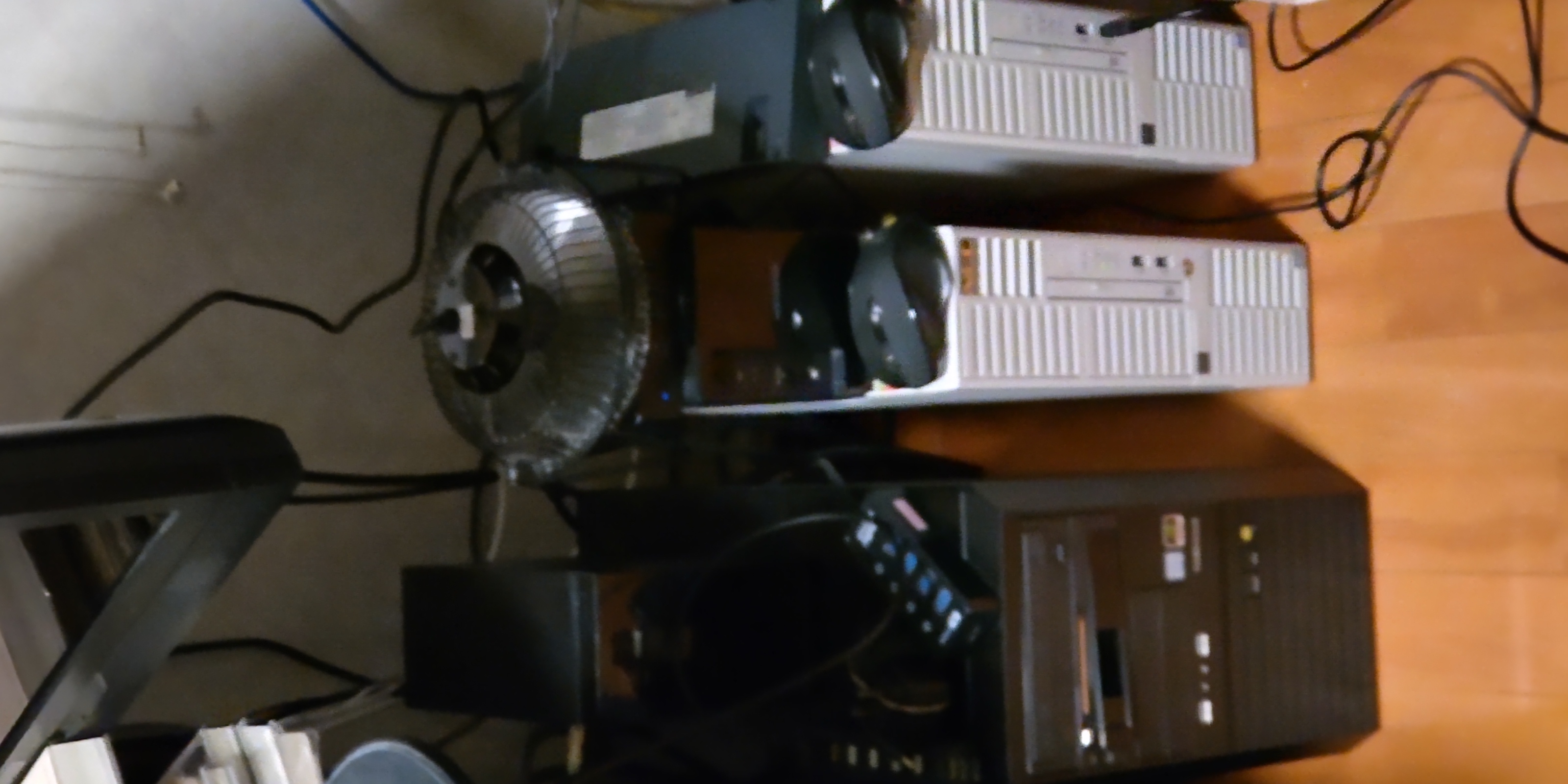 (現在は、先に触れたミニPC(Nucbox)が、このhandbrake圧縮バッチを担当している。Express5800の上に鎮座した彼は、お椀を伏せるように、あるいは帽子のように、子亀の扇風機を上部に背負うことを主人によって強要され、自分の電力で扇風機を回して自分を冷やすという、あまりかっこよくない姿で働かされているのである。彼はモニタも与えられず、時々主人がsshで入り込んで、処理状況の確認や、完成ファイルの取り出し、次の処理ファイルのアップロードなどをするだけだ。扇風機は、会社で足元に隠して太ももや尻の蒸れを防ぐために働いていたやや大きめのもので、Nucboxの下まで漏れた風の余力で、下のExpress5800の冷却にも若干寄与するのでは、という貧乏くさい計算は、ここでも働いている)